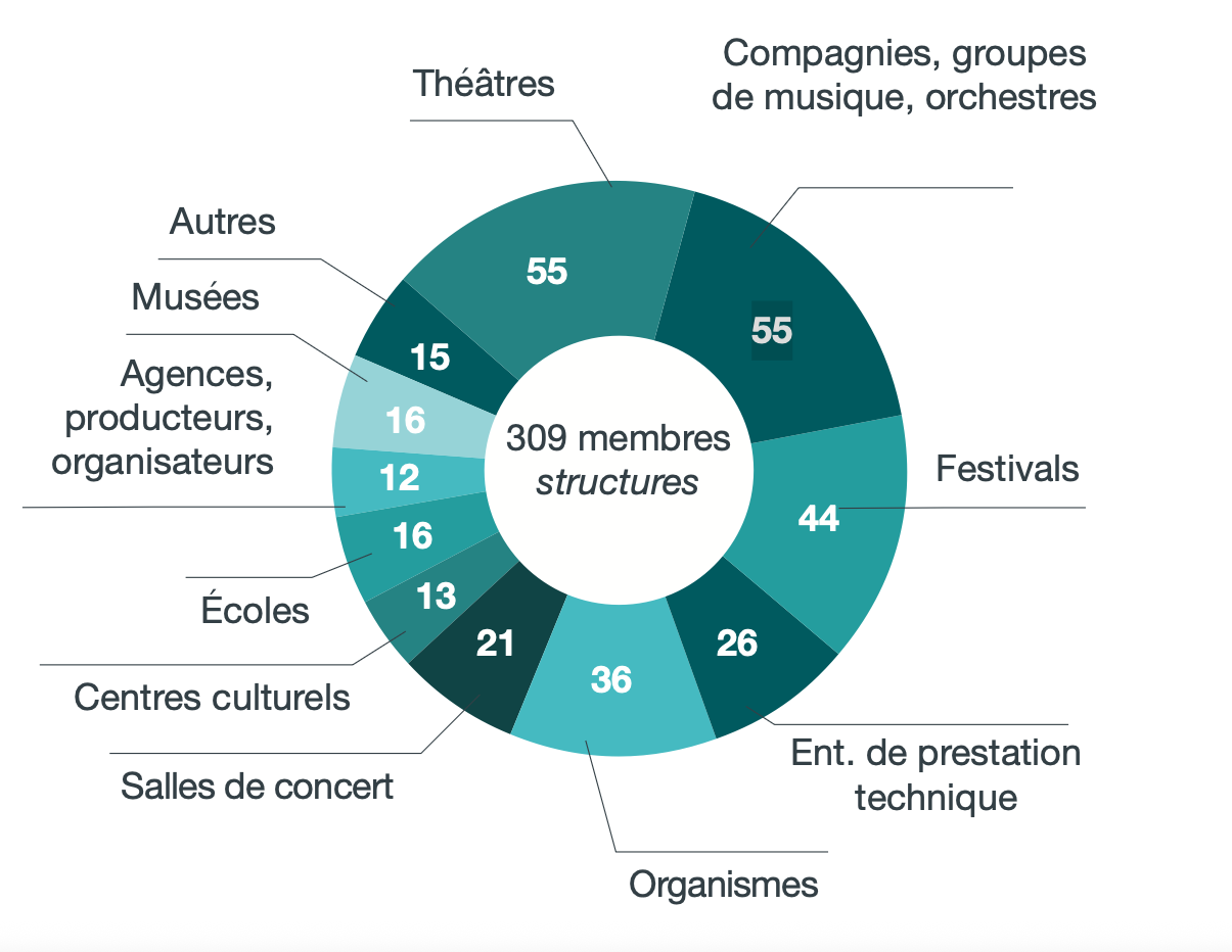 L'association artos regroupait au 31 décembre 2024 246 membres individuels et 309 structures actives dans le domaine culturel et dans l’événementiel. C'est un réseau extrêmement dense directement relié aux institutions des différents cantons et villes de Suisse romande et aux nombreuses activités et manifestations culturelles qui s'y déroulent.