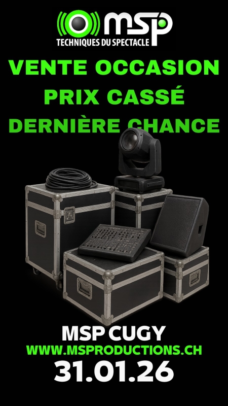 La vente aura lieu dans nos locaux à la Route de Montheron 55, 1053 Cugy le 31 janvier 2026 de 9h à 16h. Le paiement se fera sur place par cash ou par twint. Le retrait du matériel s'effectue le jour même. Réservation du matériel possible sur place mais il faudra venir le chercher la semaine suivante